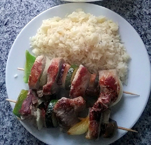 Schweinefiletspieße mit Salat ... die Medaillons habe ich abwechselnd
