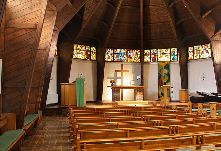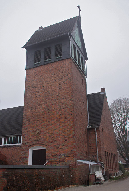 Weil die Sonntagskirche gestern eine besondere Kirche war, gibt es die Auflösung schon heute. Und weil das gestern ein besonderer Tag war ... der Tag des stillen Gedenkens an die Kriegstoten und Opfer der Gewaltbereitschaft und Gewaltherrschaft. Wegen dieses Tages hatte ich ganz gezielt diese Kirche ausgesucht. Eine Kirche der Hoffnung. Karin hatte ja kommentiert, dass sie die Kirche an eine Notkirche erinnert. Und unsere gestrige Kirche ... ![]() ... ist auch eine solche "Notkirche". Es gab kurz nach dem Krieg ein solches Notkirchen-Programm, weil ja viele Kirchen zerstört waren und es an gottesdienstlichen Räumen mangelte. Unsere Kirche ... ![]() ... entstand 1949. ![]() Es gibt Notkirchen, die als Zwischenlösung konzipiert waren, das war dann ein zu Kirchenzwecken provisorisch hergerichtetes, ursprünglich anders genutztes Gebäude, wie z.B. eine Baracke, Scheune, Halle, Lagergebäude. Oder in eine beschädigte Kirche wurde eine Zwischenwand eingezogen und nur in einem Teil der Kirche der Gottesdienst gefeiert. Und dann gab es die neugebauten Barackenkirchen, in Gebäude, die mit einfachen Materialien wie Wellblech, Holz oder Pappe gebaut wurden. Diese Kirchen wurden fast alle später durch Neubauten ersetzt. Und es gab das Bartning-Notkirche-Programm ... diese Kirchen waren auch Notkirchen, aber nicht nur für den Übergang gedacht und so stehen die meisten heute noch und werden auch als Kirche genutzt. So auch unsere Kirche. Ich musste über den gestrigen Kommentar von Marion aus Hamburg schmunzeln ... sie sagte: "Für mich eine wunderschöne Kirche, die mir sehr vertraut vorkommt, obwohl ich sicher noch nie dort war". Ich glaube, diese Kirche wird Marion bald noch viel vertrauter vorkommen ... ... denn wir waren gestern in Hamburg, im Stadtteil Schnelsen. Das ist die damals als Notkirche gebaute Adventskirche in Hamburg-Schnelsen. |