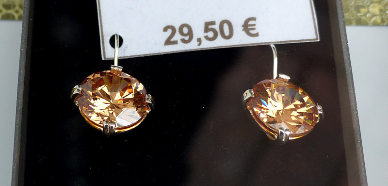 Wenn ich etwas glänzendes, glitzerndes sehe ... muss ich das fotografieren. Und deswegen fotografiere ich auch Schmuck in Schaufenstern. Hier eine kleine Auswahl ... ... und ich fange ganz groß an ... überdimensional groß: ![]() Ja, da haste was am Hals hängen ... und falls du die Idee hast, am Finger muss auch was ganz großes sein ... bitteschön: ![]() Jetzt auch nicht klein, aber viel dezenter ... ![]() ... und wahlweise in gold oder silber ... oder, ganz ähnlich, diese hier: ![]() Auch groß, aber ganz anders ist dieses Schmuckstück: ![]() Kommen wir zu etwas klassischem ... sieht aus wie ein Diamant, funkelt auch so schön, ist aber der sehr preiswerte Zirkonia: ![]() Oben in weiß ... es gibt ihn auch in gelb: ![]() Und ein ganz besonderes Seelenfarben-Schmuckstück ist das hier: ![]() Je nachdem wie der Blickwinkel ist, sieht man mehr Spiegelung oder mehr Farben: ![]() Das ist der Mystik-Topas. |