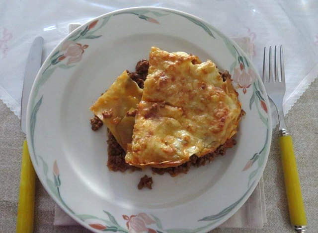 Lasagne, aus Rinderhack, wie immer zuviel.