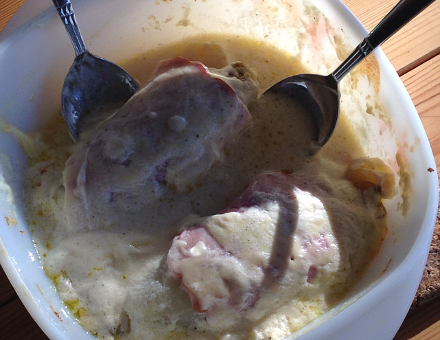 mit einer Béchamelsoße (selbstgemacht, mit etwas Zitrone abgeschmeckt)