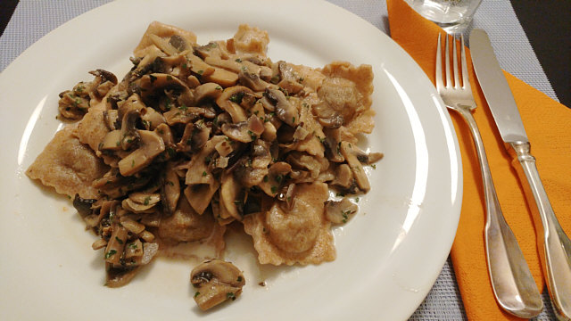 Für die Kinder gab es Tomatensoße dazu, für uns Champignons.