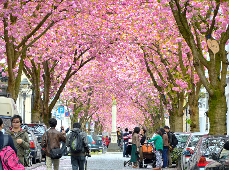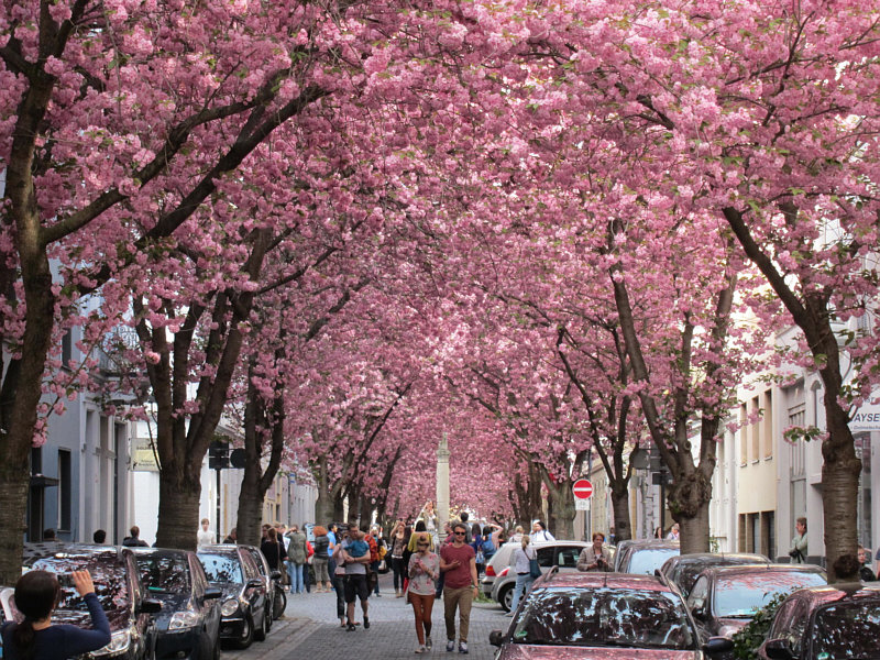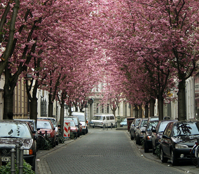 Ja, die Menschen ... da liegt Freud und Leid nah beieinander und der eine macht was richtig gut und der andere wills kaputt machen. Wir sind in Bonn. Vor 30 Jahren war die Straßen grau mit viel Durchgangsverkehr. Die Stadtplaner dachten sich etwas schönes aus, beruhigten die Verkehrslage und pflanzten in zwei Straßen viele Bäume der japanischen Blütenkirsche. ![]() ![]() Zuerst waren die Anwohner dagegen, sie hatten Angst, dass ihre Wohnungen durch die Bäume verdunkelt werden. Und heute ? Gelten diese beiden Straßen als ein Wahrzeichen von Bonn. Es gab zwischenzeitlich sogar ein Kirschblütenfest, aber wegen des hohen Besucherandrangs findet es nicht mehr statt. Der Besucherandrang ist aber trotzdem da. Immer mehr japanische, chinesische und andere asiatische Besucher kommen. Und auch immer mehr Deutsche finden den Weg in die beiden Straßen. Auf Instagram sind die Kirschblüten auch der Star und und und. Es findet ein Flohmarkt statt, die kleinen Läden in den Straßen bieten besondere Aktionen, ein Lokal verdreifacht seinen Umsatz ... und viele Fotografen sind in den beiden Straßen unterwegs: ![]() ![]() Eigentlich doch alles eine wunderbare Sache. So beliebt, dass extra ein Schild "Kirschblüten-Fotografen, bitte Schritt fahren" aufgestellt wurde. Kurze Zeit später wurde es allerdings geklaut. An den Wochenenden werden nun sogar mobile Toiletten aufgestellt, denn die Anwohner hatten sich beschwert, dass so mancher für seine dringenden Bedürfnisse Hauseingänge und Vorgärten benutzt hat. Das sind so die kleinen Tücken des Alltags. Nicht jedem gefällt dieses bunte Treiben auf den Straßen. Im vorigen Jahr stellte jemand ein Plakat auf mit den Worten "7000 Nägel ... an alle Bonner ... wenn das Kirschblütenfest nicht ab sofort genossen und der Fotowahnsinn nicht gestoppt wird, jagen wir 7000 Kupfernägel in die Bäume". Dazu kams Gott sei Dank dann doch nicht. Dafür hat jetzt jemand in der Nacht vom letzten Freitag auf Samstag insgesamt 43 Kirschblütenbäume mit weißer Farbe beschmiert. Man hat entweder Worte draufgeschrieben ("Baum", "fällt") oder weiße Striche drauf gemalt. Man will versuchen, die Farbe zu entfernen, aber es kann sein, dass die Farbe nicht mit Wasser abwaschbar ist, dann müssen die Schmierereien sogar bleiben. Das meinte ich mit meinem Eingangssatz ... wo viele Menschen sind und auch dort, wo etwas schönes ist ... gibt es dennoch immer welche, denen das nicht gefällt, die neidisch sind, sich gestört fühlen usw. Doch vergessen wir das dennoch einen Moment und freuen uns einfach nur an dieser blühenden Straße: ![]() Hach ... es müsste viel mehr solcher blühenden Straßen geben. In viel mehr Städten. |