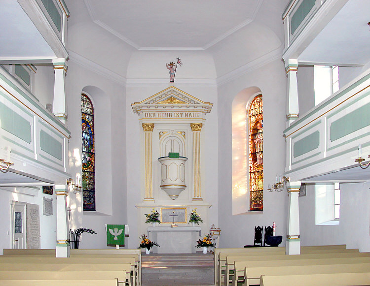 Weil es ein paar interessante Sachen zu erzählen gibt ... gibts die Auflösung der Sonntagskiche ... ![]() ... diesmal im Kalenderblatt. Es ist kein Witz ... wir sind in Hosterwitz. Damals ein Kirchdorf ... um 1200 soll da mal eine hölzerne Kirche gestanden haben. Seit 1406 weiß man offiziell von einer Kirche, damals wurde ein Pfarrer urkundlich erwähnt. 1495 wurde eine neue Kirche gebaut ... ein spätgotischer Hallenbau. Ein schlichtes Rechteck und niedriger und kürzer als die heutige Kirche. Ohne Emporen und nur mit wenigen Fenstern. 1500 wurde die Kirche auf den Namen "Maria am Wasser" getauft. Sie wurde als Fischer- und Schifferkirche genutzt und war in der Anfangszeit ein Wallfahrtsort. Um 1680 rum entsprach die Kirche nicht mehr den Anforderungen der Zeit, also wurde die Kirche barock umgebaut. Ab 1698 wurde gesammelt für den Neubau ... 1700 Taler sollte er kosten. Die Leute zahlten auch ... und das Geld lagerte in der Kirche. Es kam der 26. August 1702 ... da kam eine Räuberbande, brach in die Kirche ein, klaute das Geld, wertvolles Kirchengerät und demolierte die Kirche. 12 Jahre später fasste man die Bande ... Rübe ab. Aber das nutzte im Jahr 1702 nix ... das Geld war futsch, die Kirche immer noch alt. Man trieb nun die Kirchenschulden ein ... 700 Taler ... es fehlten aber immer noch 1000. Die musste man sich 1704 leihen ... und es sollte bis 1732 dauern, bis die Schulden wieder beglichen wurden. Aber der Umbau konnte nun beginnen ... Teile wurden angebaut, die Kirche bekam einen von südlichen Barockbauten beeinflussten Zwiebelturm. Es ging aber noch weiter mit den Umbauten ... 1741 gab es umfassende Dach- und Turmsanierungen, 1774 wurde der Kircheninnenraum erheblich umgestaltet, da wurde auch die Kanzel am Altar angebracht. Ein Bild von 1850: ![]() Das Wasser, das ist die Elbe. Maria am Wasser ist also Maria an der Elbe. Und der damals noch eigenständige Ort Hosterwitz ist heute ein Stadtteil von Dresden. Was 1945 in Dresden los war, weiß ja jeder ... aber, oh Wunder, bei der Bombardierung von Dresden blieb diese Kirche unbeschädigt. Um dann drei Monate später von einer Brandbombe getroffen und leicht beschädigt zu werden ... Wunder Ende. 1972 wurde die Kirche innen restauriert und bekam wieder die originale Farbgebung in weiß. Ein Bild von 1990 ... ![]() ... als würde die Kirche den Betrachter mit drei Augen anschauen. Es kam 2002 ... und das Jahrhundert-Hochwasser der Elbe. ![]() Die Kirche stand mehrere Tage zwei Meter unter Wasser: ![]() Ein gutes Jahr dauerte es, bis die mit Spenden und durch zahlreiche Helfer restaurierte Kirche wiedergeweiht wurde und nun wieder freundlich blinzeln kann: ![]() Schauen wir uns doch mal den Altar genauer an: ![]() Rechts im Bild sehen wir den Taufstein ... es gibt einen alten aus dem Jahr 1500, der auch noch in der Kirche steht, aber nicht mehr genutzt wird. Dieser hier im Empire-Stil kam 1930 in die Kirche, aber er ist viel älter, er wurde für die Kirche in Lichtenstein geschaffen, irgendwann restauriert und hierher nach Hosterwitz versetzt. Ich zeige auch noch die beiden schönen Fenster: