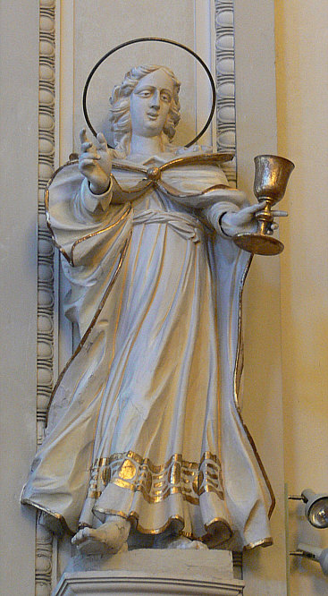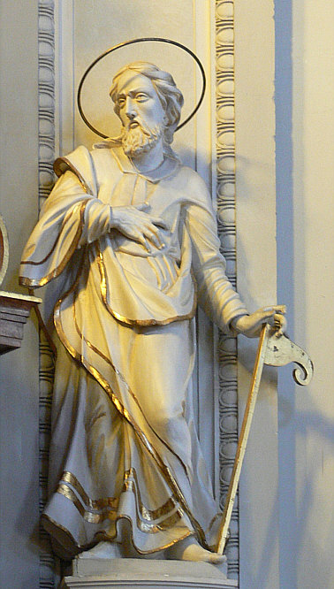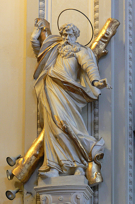 Die heutige Sonntagskirche ist von außen schon ein imposanter Bau: ![]() ... und bevor wir uns den Innenraum anschauen, zeige ich erstmal vier der Apostelfiguren: