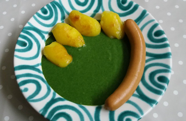Dienstag gab es für uns und unsere kleinen Enkel Spinat mit Kartoffeln
