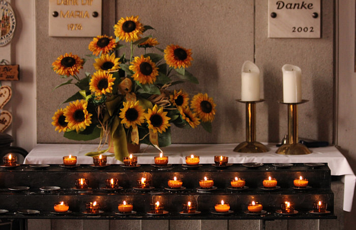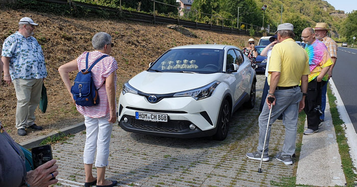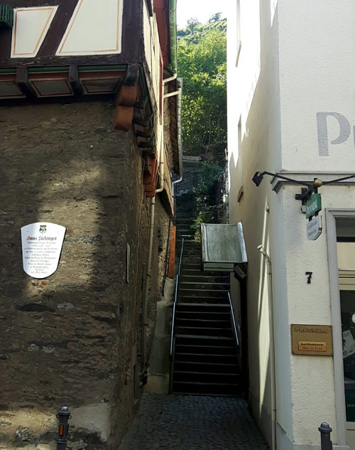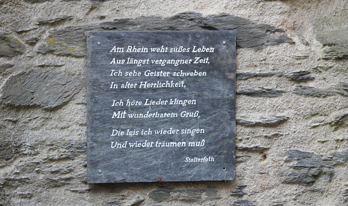 Seelenfarbentreffen in ![]() Teil 2 Heute gibts hier ein buntes Sammelsurium von Eindrücken rund um das Seelenfarbentreffen in Bacharach, damit alle, die dabei waren, sich erinnern können und alle, die nicht dabei waren, dennoch ein wenig dabei sein können :). Die Bilder wurden von den Teilnehmern des Treffens fotografiert und sie sind bunt gemischt, es ist mit allem zu rechnen ;). ![]() Bacharach ist ein schönes Fachwerkstädtchen ![]() Es gibt eine erhaltene Stadtmauer, auf der man laufen kann. Der Weg führt direkt an Häuserwänden vorbei, denn die Stadtmauer ist überbaut worden. So sieht also der Stadtmauerweg aus. ![]() Das ist der Postenturm, ein Rest der Stadtmauer. 1899 wurde er als Wasserturm wiederhergestellt. "Posten" deswegen, weil die bekannte Weinlage, in der er steht, so heißt. Man kann den Turm besteigen und hat von oben eine tolle Aussicht. ![]() Das ist ne Harley mit tollem Mattlack ... wir haben sehr viele Motorräder gesehen an diesem Tag. Die Stadt hat ja keine Fußgängerzone ... durch die eine Straße, durch die alle gehen fließt auch ziemlich viel Auto- und Motorradverkehr. ![]() Diese Fünf müssen natürlich immer dabei sein. ![]() Ein besonders schönes Fachwerkhaus ![]() Bacharach liegt am Rhein und dort waren wir natürlich auch. ![]() Treppe in Richtung der Burg Stahleck ![]() Treppe vom Stadtmauerweg nach unten ... ich kann Euch sagen, diese Treppe war nicht ohne. ![]() Kleine Geschenke ![]() Noch mehr kleine Geschenke ![]() Offizielle gemeinsame Bärenbegrüßung und Besichtigung des Probefahrt-Autos ![]() Eine Krone wirft ihren Schatten ![]() Vom Postenturm aus hat man diesen Blick. Das ist ein Wikipedia-Bild, wir Seelenfärbler sind da nicht hochgelaufen. Rechts auf dem Bild sieht man eine Kirchenruine ... ![]() ... das ist die Wernerkapelle, die ... ![]() ... im Jahre 1830 auch schon eine Ruine war. ![]() Ein Hotelschiff ... möglicherweise macht es eine Flußkreuzfahrt. ![]() Ein Containerschiff und der Blick ins Rheintal ![]() Dieses Geschäft macht Urlaub ... ![]() ... und es hat Angst, dass man mit Klopfen versucht, den Urlaub zu beenden. Jetzt wissen wir auch, wie "bitte nicht klopfen" auf japanisch heißt. Doch, in Bacharach findet man durchaus Japaner auf weiter Reise, schließlich liegt die Stadt im UNESCO-Welterbe Oberes Mittelrheintal. ![]() Guckstdu ? ![]() Schöne alte Bleiglasfenster in einem denkmalgeschützten alten Winzerhof. Erbaut 1438-1450, eines der ältesten Häuser in Rheinland-Pfalz. ![]() Ein altes Küchenschätzchen ![]() Stillleben ![]() Am Rande des Stadtmauerwegs ... kleine, edle Auszeitecke ... leider ist die Bahnlinie gleich daneben und der Blick zum Rhein ist nicht wirklich frei. ![]() Mal ein Blümchen zwischendurch ![]() Blick vom Stadtmauerweg aus nach unten ... und das an einem heißen Tag mit mehr als 30 Grad. Ich wär fast reingesprungen ;). ![]() Die Josefskapelle ... sie sieht innen ... ![]() ... so aus ... und manche haben ... ![]() ... ein paar Kerzen angezündet. ![]() Ein Frosch ![]() Da hat noch jemand in Bacharach einen wundervollen Tag erlebt. Über 30 Bilder ... das ist jetzt wirklich wie "mittendrin dabei gewesen" :). Es wird noch eine dritte Folge geben, dort gibt es dann das Gruppenbild und die Einzelbilder zu sehen. |