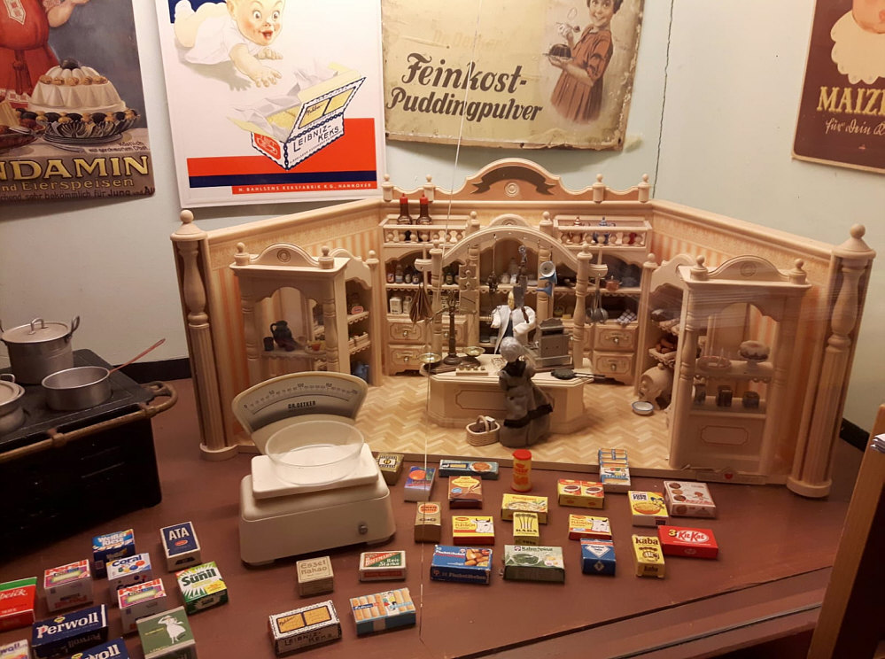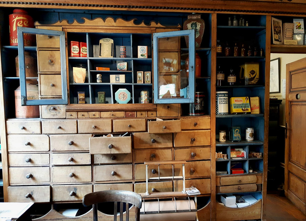Ihr erinnert Euch sicher an den Sonntag ... wir waren ... ![]() ... im Gut Hanerau ... in der alten Scheune in diesem ... ![]() ... wunderbaren Café. Seelenfärblerin Gitta war übrigens dort und durch ihre Bilder konnten wir auch dort sein. Und sie war auch noch woanders ... denn heute sind wir wieder im Norden ... 60 km weiter nordwestlich. Dort gibt es auch etwas, das wir auf keinen Fall verpassen dürfen ... das "Haus Peters". ![]() Das ist ein historischer Kaufmannsladen von 1820 in einem kleinen Ort namens Tetenbüll auf der Halbinsel Eiderstedt. Hier gibt es viel zu sehen. Und man kann sogar im Laden immer noch schöne kleine Dinge einkaufen und sich alle Zimmer im Haus anschauen. Im Obergeschoß gibts Bären und Puppen ... ![]() ... im Keller ... ![]() ... gibts Eingemachtes ... ![]() ... das man sogar kaufen kann. Das Schlafzimmer ist noch genau so eingerichtet, wie es zuletzt von der ehemaligen Hausbesitzerin bewohnt wurde. ![]() Und nun machen wir mal einen gemütlichen Rundgang durch diese Welt der Nostalgie. Durch Räume, in denen viele Momente aus alter Zeit immer noch verweilen: ![]() ![]() ![]() ![]() ![]() |