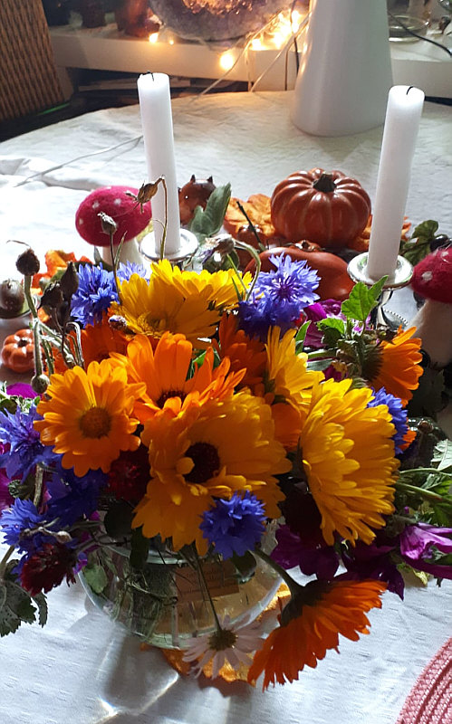 ![]() Hurra, ein neues Bilderbuch ist da ... wieder mit vier schönen Folgen :)). Es sind wie immer Bilder, die ich selbst noch nicht kenne, denn ich habe sie mir noch nicht angeschaut, will selbst auch ein bisschen überrascht werden. Alle Bilder wurden von Seelenfärblern fotografiert und alle Bilder sind aktuell. Sr. Maria ![]() Herbst in den Südtiroler Alpen ... welch eine grandiose Aussicht. Therese ![]() Das nennt sich Winterquartier ... also eine Wohnung auf Zeit. Wer genau hinschaut, sieht auch, wer da die nächsten Monate wohnt ... Thereses 7 Landschildkröten. Die graben sich dann ein ... und irgendwann wird ein neuer Frühling kommen. Monique ![]() Noch einmal zum Badesee ... nicht um zu baden, sondern um die letzen schönen Herbsttage als Erinnerungsnahrung für die Seele einzufangen. Sabine P. ![]() Da hat sich der Gang "in die Pilze" aber so richtig gelohnt ... in nur einer halben Stunde konnte Sabine und ihr Mann so viele Stein- und Birkenpilze ernten. Es wären noch viel mehr gewesen, aber sie haben nur die Schönsten mitgenommen. Dann gehts ans Putzen und Weiterverarbeiten. Und ans Schlemmen ... und was zuviel ist, da hat sich Sabine einen Dörrautomaten gekauft und ihn gleich mit Apfelringen ausprobiert. Jetzt wird er auch mit Pilzen bestückt. Und ne leckere Pilzmahlzeit gibts natürlich auch. Karen ![]() Heute geht es in den Garten. Enkelinchen und der Opa machen sich an die letzten anstehenden Arbeiten, um den Garten winterfest zu machen. Es werden die passenden Plätzchen für die Frühlingsblüher gesucht und Zwiebelchen versenkt ... ... und zwischendurch gibt es dann auch ein Tänzchen mit fliegenden Zöpfen und einem Gartengerät. Nora ![]() Wenn sie blüht, ist die Rose eine Schönheit. Wenn dann die Hagebutten kommen, ist das schön wie eine zweite Blüte. Nora hatte in diesem Jahr krankheitsbedingt die verblühten Rosen nicht abgeschnitten und darf sich nun über die vielen Hagebutten erfreuen. Lieschen ![]() Nie ist das Wasser so bunt wie im Herbst ... ob da der Enterich Augen dafür hat ? ;). Ingolf ![]() Juchhu ... eine neue Kamera ... und dann so ein schönes friedliches Bild vom Chemnitztal. Es hätte gerne so friedlich bleiben dürfen. Dann das große aaaber ... an dieser Stelle macht die Chemnitz eine Biegung, die Kurve ist zwecks Hochwasserschutz mit Steinen befestigt. Ingolf war am Wasser unten und hat einige Fotos gemacht. Beim hochkraxeln ist er auf einen lockeren Stein getreten und es hat ihn auf den Arsch gesetzt (O-Ton Ingolf). Instinktiv hat er noch die Kamera hochgerissen, aber das Display hat trotzdem einen Schlag abbekommen und ist gesprungen. Seinen alten Fotoapparat hat er viele Jahre gehabt - da ist nie etwas passiert. Okay, es hätte schlimmer kommen können ... aber der Gang zum Ufer war dann doch für den Arsch (O-Ton Engelbert). Doro ![]() Noch blüht es in der Natur ... besonders in den bunt angelegten Staudenbeeten mancher Stadt. Wer einen Strauß mitnimmt, hat dann die Farben direkt in seiner Nähe. Iris ![]() Noch einmal Pilze ... diesmal an einem besonderen Baum ... am Fuß der 100jährigen Linde im Garten von Iris.. Adele ![]() Noch ein uralter Baum ... eine alte Weide ... die sich garantiert sehr über diesen Besuch von Adeles 10jähriger Nichte gefreut hat. Inge ![]() Es ist traumhaft an der Mosel, wenn sich im Herbst die Weinberge färben, wie hier an der Moselschleife bei Bremm. Da hinten links das ist die Klosterruine Stuben. Das geht ja im wahrsten Sinne schon gut los mit dem Seelenfärbler-Bilderbuch mit auch heute wieder einer wunderbaren Mischung von eingefangenen Augenblicken. |