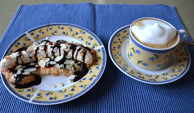 Schoko-Bananen ... ein Eiklar mit 50g Zucker und 50g Kokosraspel gut