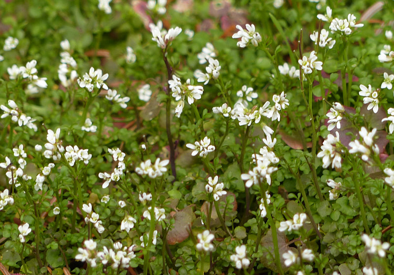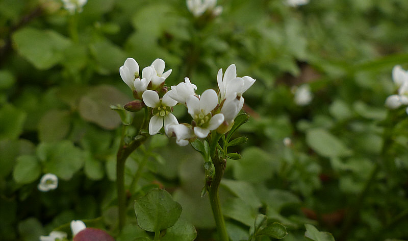 ![]() Dieses Bild, zumindest die Bäume davon, war vorgestern Ausgangsbild im Abreißkalender. Nun sind wir noch mal hier ... und senken den Blick: ![]() Wir stehen vor einem Vorgarten, wobei Garten übertrieben ist. Aber immerhin grün ... und das sogar unter den alten Bäumen. ![]() Nun hatte mich die Neugier gepackt ... was blüht da so reichhaltig ? Ich ging näher ... ![]() ... und ich merkte, dass ich noch näher ran gehen muss, um diese kleine grün-weiße Welt ganz neu zu entdecken: ![]() Ich hatte nicht wirklich einen Plan, "was" ich da fotografiere. Aber ich wusste, wer das evtl. wissen könnte. ![]() Aber zuerst mal in Ruhe fotografieren und diese doch sehr kleinen Blüten von ganz nahem sehen: ![]() ![]() ![]() So ... und nun die Frage: wie heißt ihr denn, ihr kleinen Schönheiten ?? Die Schönheiten antworten leider nicht ... aber ich hatte da eine Idee ... und so hab ich mal bei Wikipedia in der "Redaktion Biologie/Bestimmung" nachgefragt. Vielleicht bekomme ich ja Antwort. Ja, bekam ich ... und nun darf ich Euch vorstellen: "Cardamine hirsuta" Auf deutsch "behaartes Schaumkraut", auch als Ruderal-Schaumkraut oder Gartenschaumkraut bezeichnet. Es ist ein Therophyt ... d.h., dass es alle für es ungünstigen Jahreszeiten als Samen im Boden überdauert, um dann von März bis Juni zu blühen. Das Kraut wurzelt bis 35 Zentimeter tief, war früher selten, hat sich aber in wintermilden Lagen in Deutschland explosionsartig ausgebreitet. Es wurde wahrscheinlich über Baumschulen und Gärtnereien eingeschleppt. Die Pflanze ist ein Saftdruckstreuer ... sie schleudert ihre Samen bis zu 1,40 Meter weit weg. Zu finden ist es in ganz Europa und östlich sogar bis zum Himalaya. Auch in Ostafrika wächst es ... insgesamt gesehen ist es mittlerweile durch Verschleppung fast weltweit verbreitet. Sind so kleine Dinge an denen die meisten fast alle wenn nicht sogar alle vorübergehen Sind so nahe Dinge für die man nicht verreisen muss Wenn man sich vor ihnen verbeugt dann darf man sie in ihrer Welt besuchen |