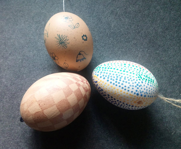 Ich hänge diese Eier auch nach vielen Jahren immer noch an meine drei Ostersträuße.