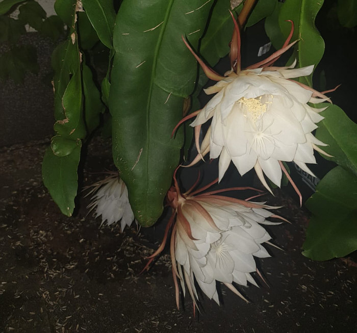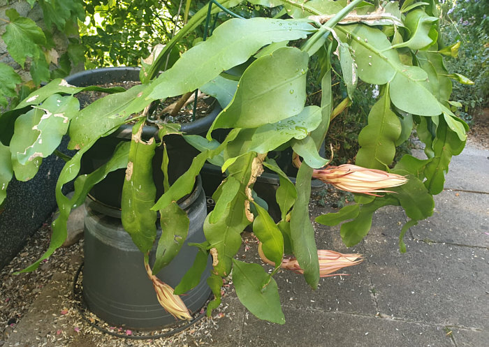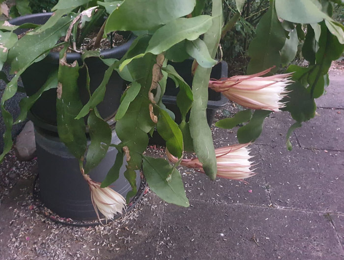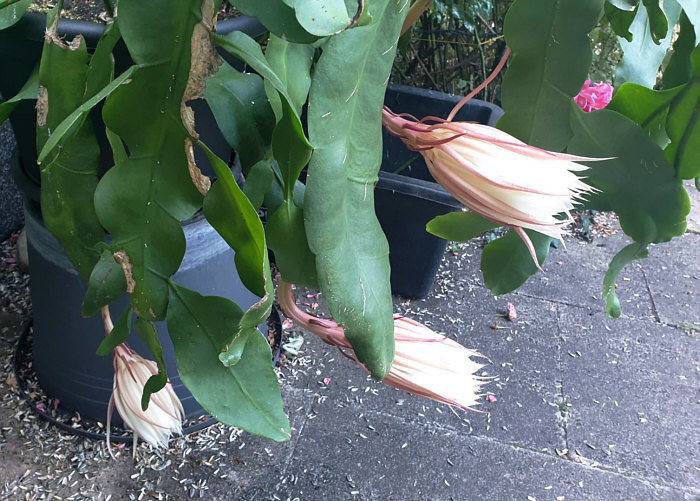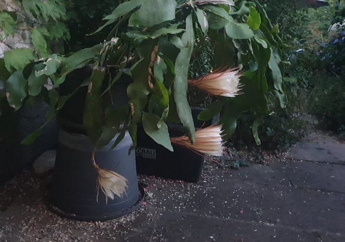 Seelenfärblerwoche heute: Adelige Gesellschaft am Abend Letzten Freitag bei Juttinchen: Am Nachmittag: ![]() Die Königin bereitet sich vor 21.14 Uhr: ![]() 21.30 Uhr: ![]() 21.50 Uhr: ![]() 21.59 Uhr: ![]() Sie fängt schon an zu duften 22.06 Uhr: ![]() Juttinchen schreibt: "Ich weiß noch, dass wir uns vor einigen Jahren die halbe Nacht damit verbracht haben, jede Phase der Blüte der Königin der Nacht zu fotografieren. Es war richtig spannend. Diese Terrassen-Königin blüht zum ersten Mal. Sie ist bestimmt schon 4 Jahre alt und steht das erste Mal im Freien. Und nun ist sie ganz aufgeblüht ... ![]() ... und ihr Duft ist sehr intensiv. Am nächsten Morgen ... ![]() ... ist die Blüte wieder geschlossen. Diese adelige Dame heißt "Königin der Nacht", weil sie nur eine Nacht blüht. Weil sie nur eine Nacht die strahlende Königin ist. |