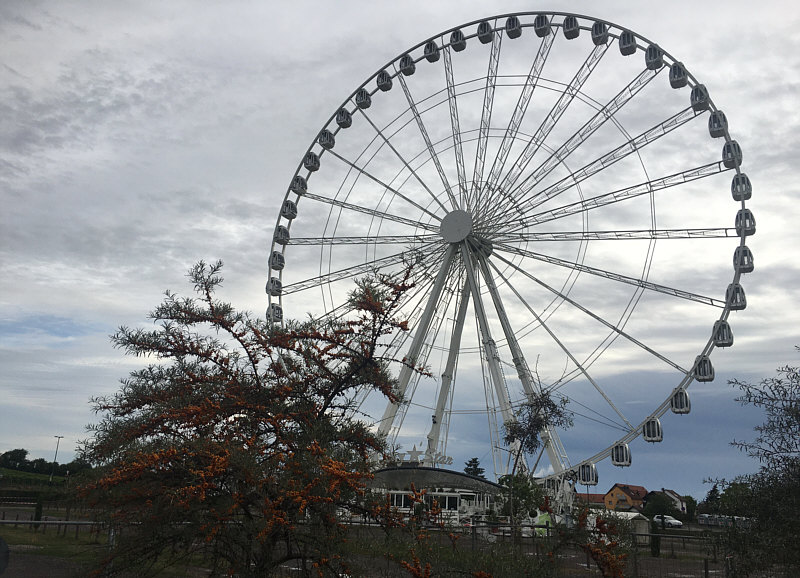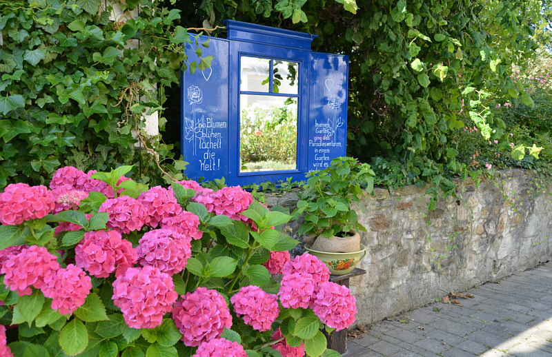 Das ist "Lady", eine Königspudel-Dame, die sich hinter den Tagetes, die Silvi selbst gezogen hat, hingesetzt hat. Nein, die Dame duscht nicht ... aus der Gießkanne kommt Kunst, aber kein Wasser raus. MaLu ![]() In Bad Dürkheim steht aktuell und noch bis Oktober das weltweit größte mobile Riesenrad. Es hat 48 Gondeln und einen Durchmesser von 70 Metern. Maggi CH ![]() Maggi schreibt dazu: "Im Frühjahr habe ich versucht einen Teil unseres Rasens in eine Blumenwiese zu verwandeln. 5 einzelne Blümchen gab es bis jetzt und letzte Woche wohnte eine Wespenspinne im hohen Gras. Vor etwa 20 Jahren sah ich zum ersten und letzten Mal ein so hübsches Exemplar. Bis wir eine hübsche Blumenwiese haben, dauert es wohl noch ein paar Jahre." Ich hab Maggi dann geraten, im nächsten Jahr die "Mössinger Blumenwiese" zu säen. Philomena ![]() Philomenas Mann entdeckte Ende Juli im dunklen Keller, dass die Amaryllis - ohne Erde - eine Blüte schiebt! Dann aber schnell in den Keller, die Amaryllis hoch in die Wohnung holen, eintopfen und ihr sagen, dass sie spinnt. Philomenas Mann meint "sie will auch mal den Sommer sehen." Genau so ist ... und sie blüht nicht nur ... es kommt auch ein zweiter Blütentrieb. Lina ![]() Das perfekte Recycling. Ein altes Fenster und ein Spiegel, der von der Sperrmüllsammlung vom Bauhof geholt wurde. Dann schleifen, nageln, kleben und mit blauer Farbe bestreichen. Und zwar vom "Rosen-Bertl", wie dieser Mann liebevoll genannt wird. Er betreut mit seinen fleißigen Helfern den wunderschönen Rosengarten in Kirchschlag. Und dort ist auch dieses Spiegelfenster zu finden. Christiane H. ![]() Christiane hatte Glück, dass sie gerade noch vor der ganz großen Hitze ein Sonnenblumenfeld mit einem Sonnenuntergang fotografieren konnte. Ein paar Tage später sah sie dann aus dem Auto heraus, wie sehr die Blumen gelitten haben. Das ist ein Sonnenblumenfeld zum Selberpflücken, damit man sich ein wenig Sonne ins Haus holen kann. Diese Blumen halten lange ... wenn das Wetter vorher mitspielt, sogar zwei Wochen. Das fängt gut an ... nicht nur gut, sondern saugut ... ich bin jetzt schon begeistert und freue mich auf die weiteren Folgen. |