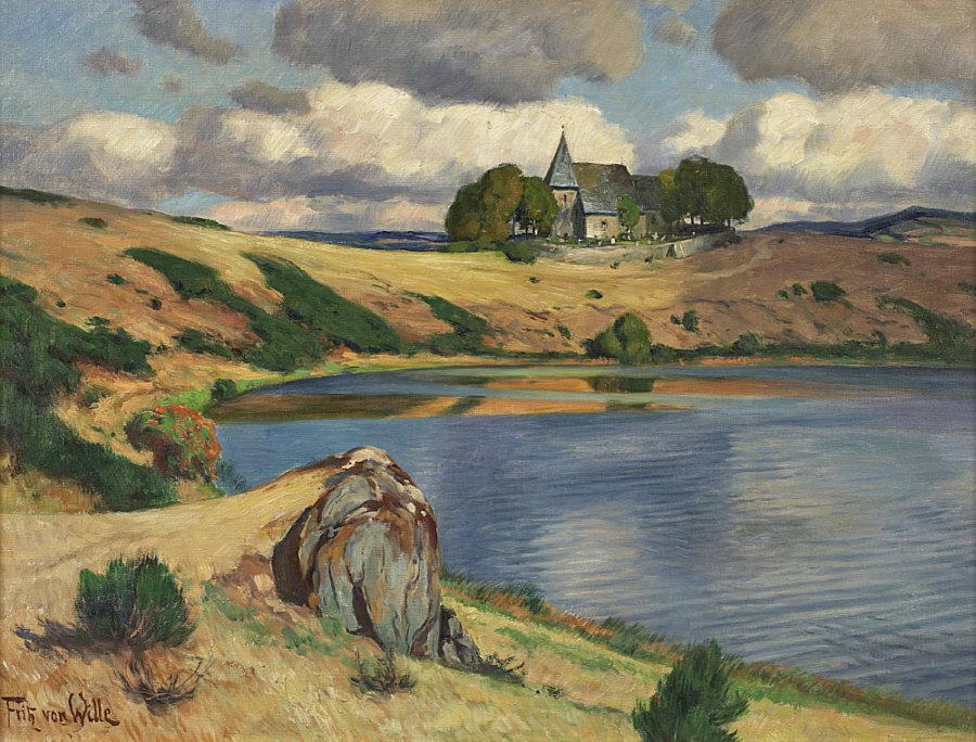 Heute ist ein besonderer Tag, denn ... 1. es gibt Kunst im Kalenderblatt und 2. auf den meisten seiner Bilder ist die Eifel zu sehen ;)) Ein herzliches Willkommen an Fritz von Wille im Kalenderblatt Geboren 1860 in Weimar. Sein Vater, geboren in Kassel, war auch ein bekannter Landschafts- und Genre-Maler. Seine Mutter war Tiermalerin. Von Wille wuchs in Düsseldorf auf und heiratete die Tochter eines Tabakfabrikanten. Einer seiner Söhne sollte auch Maler werden. Fritz von Wille hat einen eigenen Stil, der Elemente der späten Romantik mit dem Realismus und dem Impressionismus vereint. Man darf ihn ruhig "Eifelmaler" nennen, es werden gleich so einige Bilder aus dieser Gegend zu sehen sein. 1911 hat er sogar die Burg Kerpen gekauft und hat von da an endgültig in der Eifel gelebt. Und nun kommen die Bilder ... ich habe einen kleinen Jahreslauf gemacht und zeige die Bilder vom Winter über Frühling, Sommer bis zum Herbst. ![]() Wintertag am Dauner Maar ![]() Winter in Bewingen ![]() Vorfrühling in der Eifel ![]() Frühling in der Eifel ![]() Blick auf Kronenburg im Frühjahr ![]() Blühender Kirschzweig mit Blick auf die Müllenborner Felder ![]() Ansicht vom Moseltal bei Cochem ![]() Frühlingstag in den Siegauen ![]() Kirschbaumblüten mit Blick auf das Dalbendener Schullandhaus ![]() Blühende Ginsterblüten am Weinfelder Maar ![]() An der Bauernkate ![]() Blick auf das Moseltal bei Müden ![]() Ein stilles Tal ![]() Aus erloschenen Vulkanen ![]() Sommerliche Blumenwiese bei Daun ![]() Die Jungfernfahrt des Raddampfers Bismarck auf dem Rhein vor der Altstadt von Düsseldorf ![]() Kornfelder in der Eifel ![]() Sommerliche Blumenwiese bei einer Kapelle ![]() Weinfelder Maar ![]() Blühende Hortensien im Klostergarten Villers-la-Ville ![]() Blick über den Rhein auf die Burgruine Hammerstein, die Hammersteiner Werth und das Städtchen Namedy jenseits des Flusses ![]() Herbsttag in der Eifel ![]() Herbstwald im Harz ![]() Herbst am Laacher See |