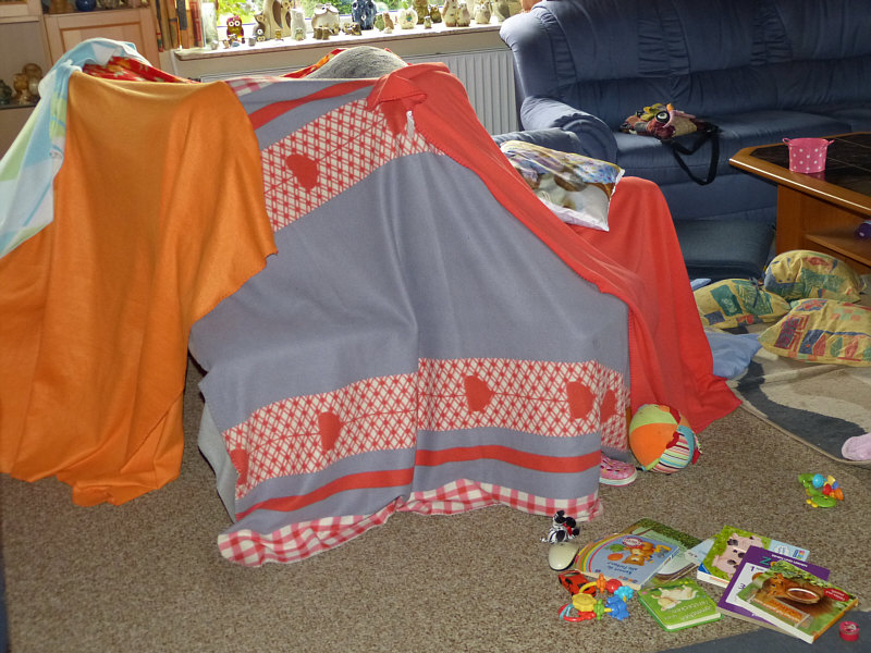 Croli schreibt: Den einzigen schönen Tag in den Herbstferien haben wir genutzt, um einen Ausflug zum Schloss Drachenburg bei Königswinter zu machen. Spekulatius in den Läden im September ist ja nichts ungewöhnliches, aber geschmückte Weihnachtsbäume im Oktober kannte ich bisher noch nicht! Auf dem Gelände der schönen märchenhaften Burg stehen ganz viele davon! (Keine Ahnung, wieso.) Und bei dem starken Wind an dem Tag fiel später einer mit großem Geschepper um. Frohe Weihnachten! ;-). Margareta ![]() Das ist ein Foto von einem Herbstspaziergang von der höchsten Erhebung von Margaretas Gemeinde aus ... auf ca. 700 m Seehöhe. Man sieht hervorragend bis zu den Alpen, und auch dass die tiefer gelegenen Ortschaften wohl ein bissl im Nebel sitzen und gar nix von dem schönen Sonnenschein haben. Wolkenfrosch ![]() Das Abendrot am Tag der Deutschen Einheit. Nichts eint Ost und West so gut wie ein Abendrot, denn überall werden Menschen gleichzeitig in den Himmel schauen und sich daran erfreuen. Margot ![]() Federleicht ist sie im Wasser gelandet und liegt nun im Teich des Gartens von Margots Schwiegermutter. Freunde von Margot sagen, das sind Grüße eines Engels. Birgit (Hildesheimer) ![]() Das ist verdammt schwer, aus dem Auto raus eines dieser flinken Wesen zu fotografieren. Karen ![]() Karen schreibt: "Es wurde mal wieder gespielt. Enkelinchen und ihr kleiner Halbbruder haben sich im Wohnzimmer eine Höhle gebaut. Dazu werden immer sämtliche Decken und Kissen, die erreichbar sind, entführt und zweckentfremdet. Drumrum krabbelt der Jüngste und verteilt großzügig alles Spielzeug, das er erwischen kann und hin und wieder bringt er auch (unter lautem Gejohle der "Großen") die Höhle unbeabsichtigt zum Einsturz. Dann wird natürlich munter neu aufgebaut - und wenn es GANZ besonders gut läuft, darf auch der Opa mal den Kopf reinstecken. Die Kinder haben immer jede Menge Spaß - bis der Papa kommt, um sie abzuholen ... und der Opa dann aufräumt ;-)" Wieder so ganz unterschiedliche und sehenswerte Bilder von Momentaufnahmen in Seelenfärbler-Leben :)). |