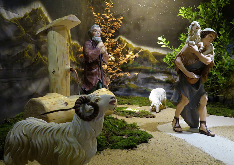 und die ihre Schafe gerade noch zu einem Brunnen mit echt fließendem Wasser