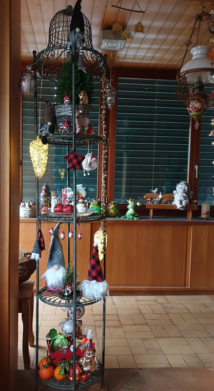 Sommerregen - Weihnachtlich geschmückte Pflanzen-Etagere.