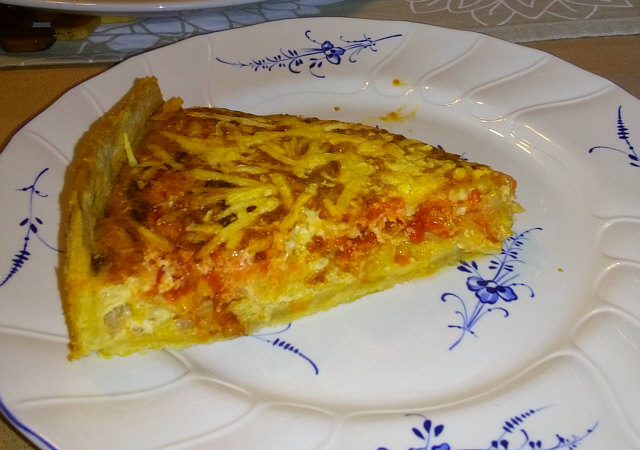 In der Springform ein Knetteig, angebratenes Thüringer Mett und