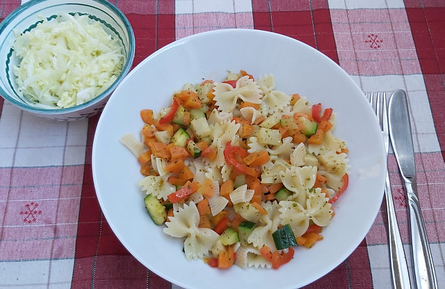 Resteessen: Bratnudeln (eingefroren) mit Almö (Gemüse, was da ist, Alles