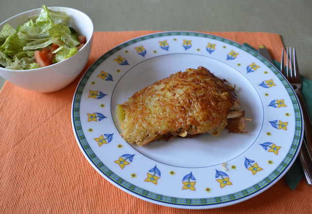 Fischfilet würze ich ... umhülle es mit geriebenen Kartoffeln und brate