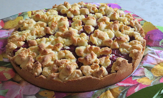 Kirschstreusel mit Pudding-Schmandfüllung