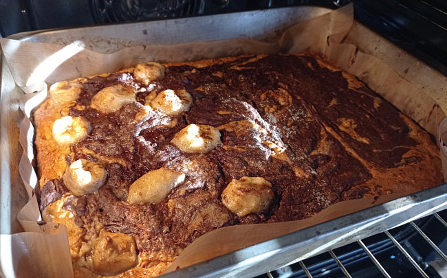 Backblech nehmen). Bei 170 Grad (Umluft) ca. 50 Minuten backen.