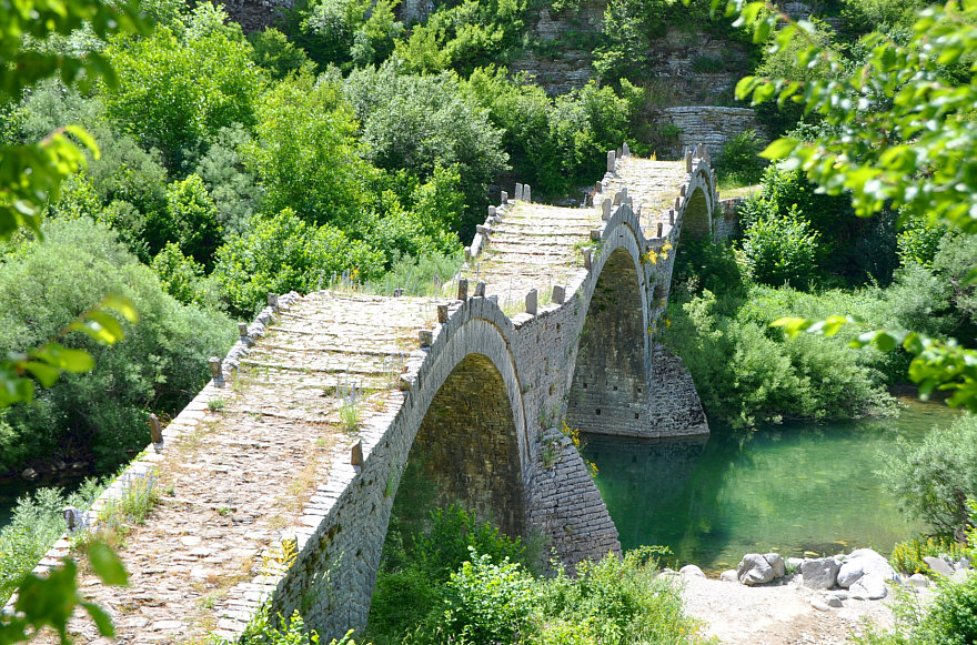 stablie Brücke über eine ziemlich wilde Landschaft mit Fels und Wasser