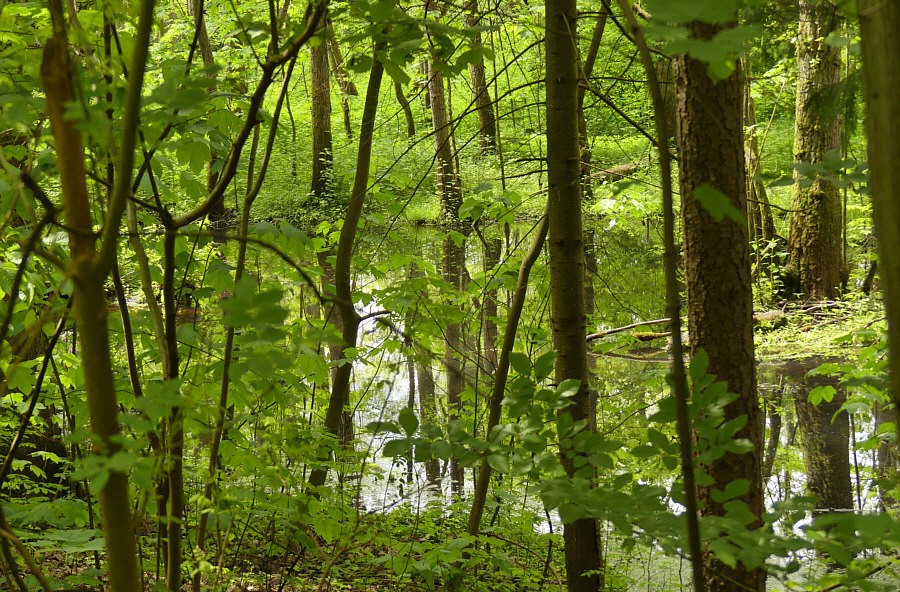 ... man sieht an vielen Stellen Wasser, doch die Bäume stehen so dicht,