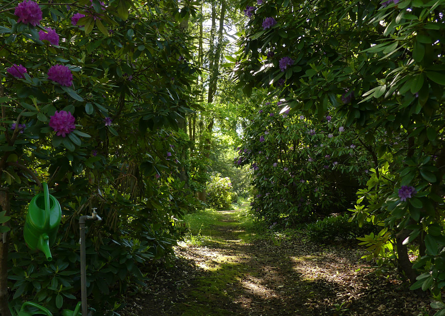 Ihr seht ja, dass unten ein großer Rhododendronbusch steht