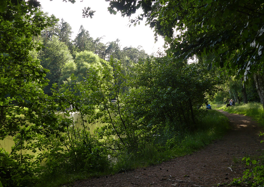 Bald öffnet sich das Gelände und wir erreichen einen Fischweiher.