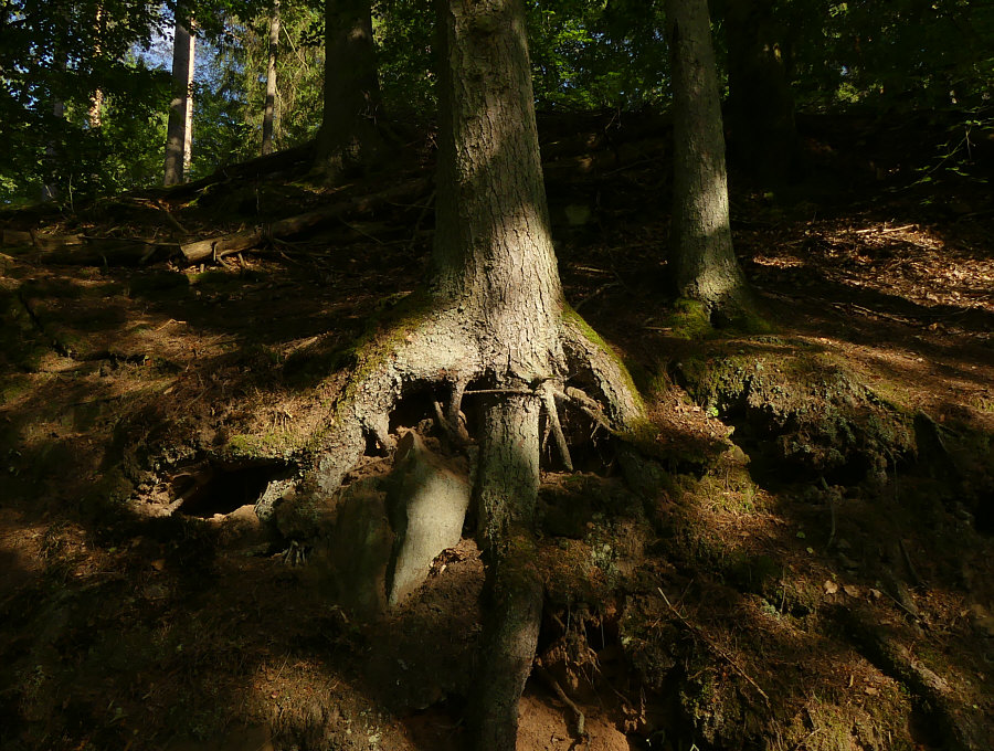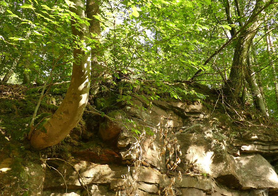 ... sind die nächsten Meter. Alte Bäume, die auf Steinen wachsen.