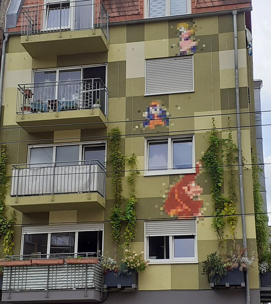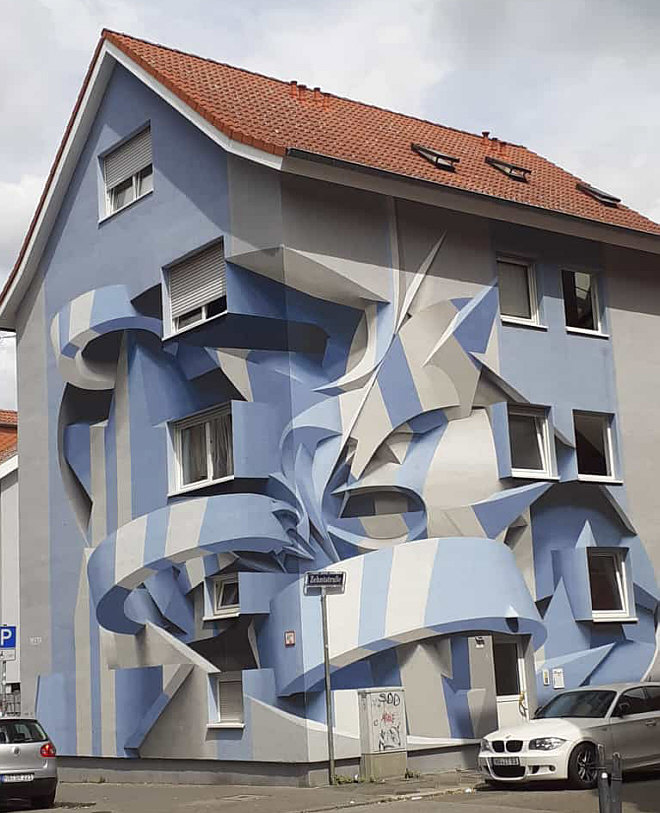 Initiator Feuerwache Mannheim Die macht was ? Diese stellt den Kontakt zu den Künstlern her, rekrutiert Sponsoren für die Farben und Hebebühnen etc. und sorgt für die entsprechenden nutzbaren Flächen. Und dann ? Es gibt, über das Stadtmarketing, mehrere Touren. Eine ist z.B. ca. 4 km lang ... zu Fuß in etwa zwei Stunden. Um was gehts denn ? Um die folgenden Häuser, die bei so einer Tour besucht werden können. Satu war dabei und hat Bilder mitgebracht: 1