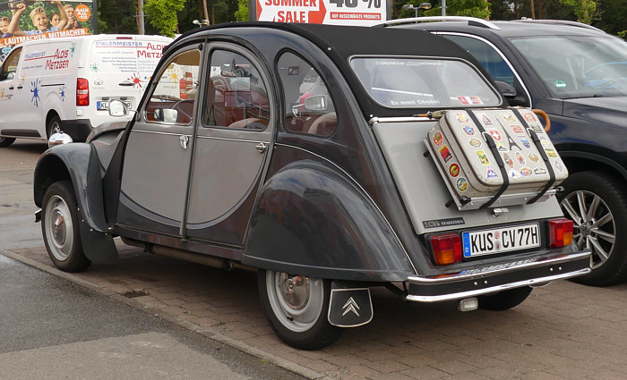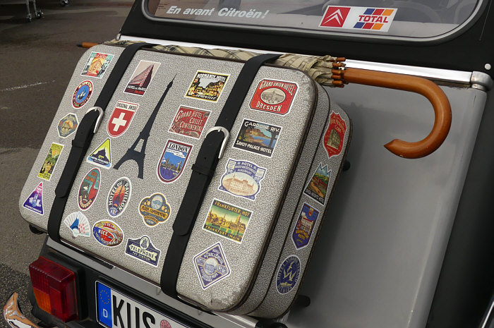 Gestern auf dem Parkplatz vom Baumarkt: ![]() Aaah ... oooh ... hach ... ![]() ... eine Ente ... ein 2 CV Charleston ... ![]() ... mit tollem Koffer hinten ... ![]() ... der sogar einen Schirm angeschnallt hat. Die Aufkleber haben mich angezogen ... es sind alles Hotel-Aufkleber. Ob der/die Fahrer/Mitfahrer der Ente dort überall waren ? Oder einfach solche Aufkleber mögen ? Eher das ... man kann nämlich solche Aufkleber kaufen. Ja, und ich denke, dass sind auch solche ... die haben alle einen schmalen weißen Rand, wären das Original Hotelaufkleber, dann wären die Ränder unterschiedlicher gestaltet, denke ich. Und sie hätten auch nicht durchgehende historische Bilder. Und diese Ente wäre auch nicht das klassische Auto für solche Hotels und solche langen Reisen dorthin. Ach, egal ... ich zeige die Aufkleber einfach mal. ![]() ![]() ![]() ![]() ![]() ![]() ![]() ![]() ![]() ![]() ![]() ![]() ![]() ![]() ![]() ![]() ![]() ![]() ![]() ![]() ![]() ![]() ![]() ![]() ![]() ![]() ![]() ![]() ![]() ![]() ![]() |