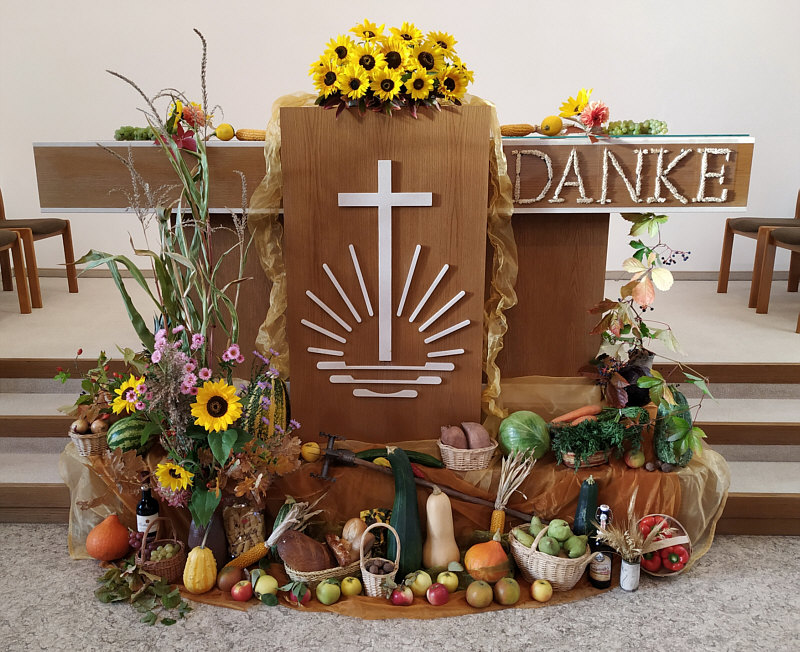 Erntedank in der Neuapostolischen Kirche ... am Blumenschmuck hat auch