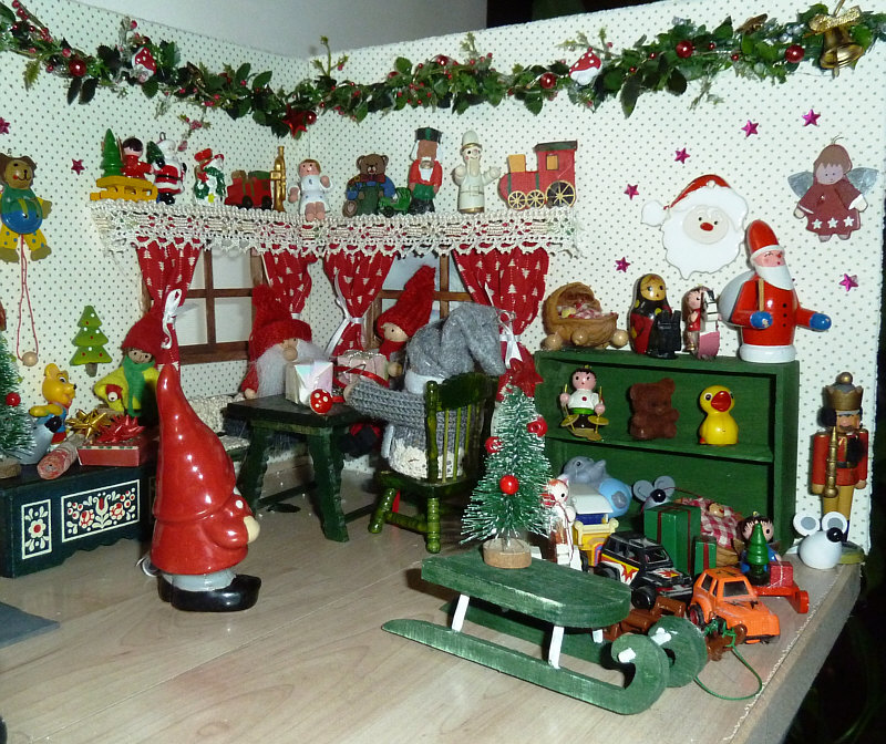 Das Puppenzimmer, das ich gleich zeige, hat sie selbst gebastelt.