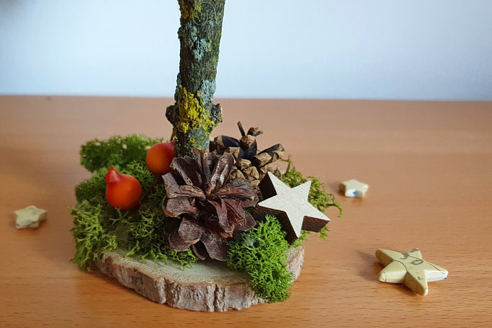 Noch etwas Moos und Deko aufkleben und fertig ist ein schönes Bäumchen.