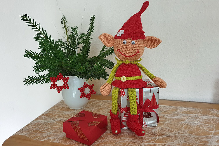 Diesen Weihnachtself hat Elfi im letzten Jahr gehäkelt: