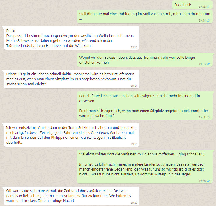 spontane Zwiegespräche im Advent Die Gespräche finden in diesem Jahr ganz spontan per Whatsapp statt. Erst 2-3 Tage vor dem Kalendertürchen. weiter