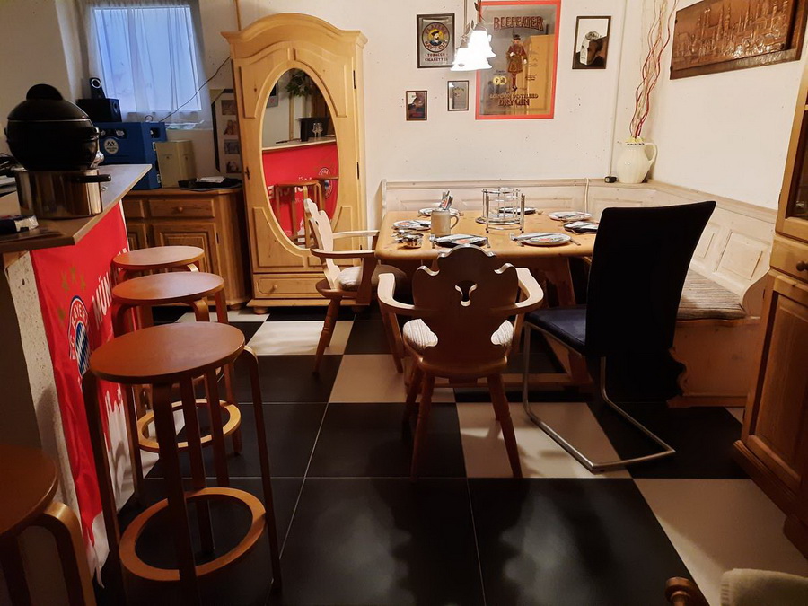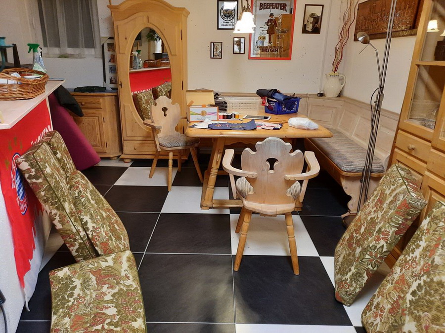 Heute sind wir bei Lieserl zu Gast. Lieserl ist ja Schneiderin und heute hat sie uns ein wunderbares Kalenderblatt zusammengeschneidert :)). Sie schreibt: Hallo Engelbert ... ich schick dir mal eine kleine Homestory aus meiner Werkstatt. ![]() Hier also arbeite ich. Über mir ein kleines Fenster um ein bissl Tageslicht und Frischluft reinzulassen. Radio und Telefon sind auch sehr wichtig. Rechts ist mein Hauptarbeitsplatz an der Nähmaschine. Gegenüber die Overlock-Maschine, rechts vorne seht ihr ein bissl von der Bügelanlage. Und links ist der große Zuschneidetisch, drunter Wasch- und Spülmaschine sowie der Wäschetrockner. Im Schrank der offen steht sind noch viele Dinge, die ich immer wieder während der Arbeit brauche. Im geschlossenen Schrank ist mein Haus-Werkzeug (Bohrmaschine, Stichsäge, alles was man als Heimwerker so braucht). ![]() Diesen Bereich sehen meine Kunden. Hier finden Anprobe und Besprechung statt. Natürlich schauts nicht immer so wüst aus, wenn ich einen längeren Termin habe, dann versuch ich schon etwas aufzuräumen. ![]() Hier also sitze ich ein viertel meiner Arbeitszeit. Viel Licht, das nötige Werkzeug in Griffweite. ![]() Die alte Rees ist meine älteste Mitarbeiterin. Seit 20 Jahren in meinem Besitz, hat aber etwa 50 Jahre auf dem Buckel. Sie ist eine der ersten Schnellnäher, die auch Zick-Zack-Stich konnte. ![]() Meine erste Fuhrparkgarage, die Maschinen stelle ich später einzeln vor. ![]() Dieses kleine Maschinchen hab ich mir 1982 auf der Handwerksmesse in München gekauft. Gerade fertig mit der Lehre wollte ich natürlich eigenes Werkzeug statt immer auf Omas Maschine zu nähen. ![]() Das ist eine Coverlockmaschine. ![]() Mit ihr kann man wunderschöne Rollsäume für Abend- oder Brautkleider nähen. Aber auch jede Art von Jersey verarbeiten sowie dehnbare Säume an T-Shirts und Hosen. ![]() Mit dieser Blindstichmaschine näht man von außen unsichtbare Säume bei z.B. Hosen und Kleidern. ![]() Das ist meine Overlockmaschine. Sie teilt sich mit der Nähmaschine meinen Hauptarbeitsplatz. Sie versäubert Nähte und schneidet dabei gleich die Fransen ab, so dass auch innen alles schön sauber aussieht. ![]() Hier ist meine Stickmaschine untergebraucht. Mit dem ganzen Zubehör wie die Stickkarten für etwa 1500 Motive, 90 Spulen mit Stickfäden und etwas Kleinteile noch dazu. Außerdem hab ich hier Schaumstoffproben von meinem Schaumstoffhändler, denn ich nähe auch sehr viele Polsterungen für Stühle, Eckbänke, Gartengarnituren usw.: Unten in den Schubladen sind Stoffproben von meinem Möbelstoffhändler. Meine Stickmaschine bei der Arbeit. Ja, sie ist wirklich so laut. Und ich brauch eigentlich nur aufpassen wenn ein Faden reisst oder bei mehrfarbigen Mustern ... ![]() ... wann ich die Farbe wechseln muss. ![]() Das fertig gestickte Monogramm für einen Hemdkragen. ![]() Mein letzter Großauftrag im vergangenen Jahr war von meinem Sohn. Durch seine neue Arbeitsstelle brauchte er Business-Hemden und weil er von der Passform seiner maßgeschneiderten Hemden aus den vergangenen Jahren verwöhnt war, musste die Mama ran. ![]() Das ist mein Stofflager. Sehr bescheiden. Meist sind es Stoffe aus Konvolutankäufen. Manchmal aber auch ein bisschen Kaufrausch. ![]() Zuschneide- und Arbeitstisch, immer belegt. ![]() So schaut meine Werkstatt aus, wenn eine Feier ansteht. Alles aufgeräumt, dafür steht die Spülmaschine bereit. ![]() Hier nochmal Tisch und Stühle, wenn grad gearbeitet wird. ![]() Und jetzt kann hier gefeiert werden. Bissl Deko und Licht fehlt noch, aber es ist sauber und aufgeräumt. |