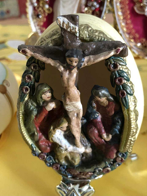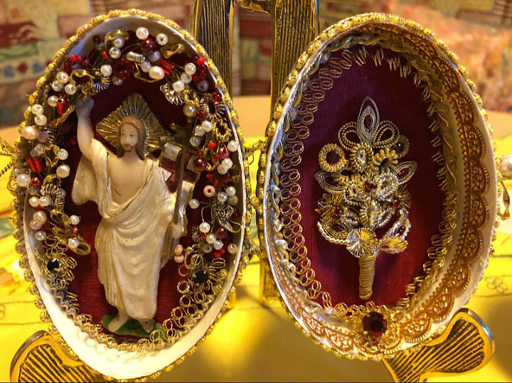 Zuerst möchte ich mich ganz herzlich für die vielen vielen Kommentare gestern (über 200, und viele stille Leser/innen dabei ... Wahnsinn) bedanken, ich hab mich sehr darüber gefreut :)). Normalerweise hätte ich ja gestern ein kreatives Oster-Kalenderblatt gestaltet, aber an manchen Tagen muss man seine Pläne ändern ;). Dann hängen wir einfach heute noch einen Tag Ostern dran ... ist ja ... Osterdienstag ... ein Tag, der vor 400 Jahren noch frei war. Damals gab es das "Leidestridium" von Gründonnerstag bis Ostersamstag und danach das "Auferstehungstridium" von Ostersonntag bis Osterdienstag darauf. Heutzutage ist davon nur noch der Ostermontag als freier Tag übrig geblieben. Aber egal ... bei Euch liegen ja bestimmt auch noch die bunten Eier rum und die Osterdeko steht und hängt noch da ... und genau solche schönen Dinge kann ich Euch heute auch zeigen ... nicht von mir ... bei mir daheim ist nichts österlich geschmückt und bunte Eier gibts hier auch nicht ... ... aber bei den Seelenfärblern dafür umso mehr: Sywe Ein paar Eier aus ihrer Sammlung: ![]() Fangen wir mal mit einem Entenei an ... dieses Ei ist ein Geschenk von einer Freundin, sie ließ das Ei mit dem Bonhoeffer-Spruch auf dem Ostermarkt beschriften. ![]() Eier aus der Slowakei. Ein Geschenk von einem Onkel aus Tschechien ... die Eier sind nun 57 Jahre alt. ![]() Eier im Bauhausstil. ![]() Von der Kollegin von Sywes Tochter bemalt. ![]() Diese slowakischen Eier sind 62 Jahre alt, ein Erbstück von Sywes Mutter. ![]() Und die aktuellen 2022er Eier wurden nicht bemalt, sondern beklebt. Ingrid K. ![]() Die Stadt Lügde bezeichnet sich selbst als die Stadt der Osterräder. Auf dem Bild werden diese Räder im Flüsschen Emmer gewässert. Danach werden sie herausgeholt ... ![]() ... auf den Berg gebracht und von den Dechen (Verein in Lügde) mit Stroh gestopft. ![]() Am Ostersonntag werden sie dann angezündet und rollen brennend ins Tal. In diesem Jahr "endlich wieder" nach 2 Jahren Pause. 20.000 Besucher werden zu diesem Spektakel erwartet. Ilse aus Waldshut ![]() ![]() ![]() Diese Eier hängen am Osterbaum von Friedrich Hechelmann in der Kunsthalle im Schloss Isny. Diese kostbaren Ostereier wurden bei einer Künstlerin in der Nähe von Budapest in Auftrag gegeben. Mit Bohrer und Ätztechnik wurden diese Kunstwerke nach einem Jahr fertiggestellt. Die Eier sind sehr zerbrechlich und jedes trägt ein eigenes, individuelles Ornament. Noch bis Pfingsten sind diese Eier in der Marienkapelle zu sehen. Inge ![]() Blumenschmuck mit österlicher Spitze. Quasi ein Osterbaum modernerer Prägung. Vor dem Verkehrsamt in Cochem an der Mosel zu finden. Sr. Maria ![]() Kreuzstich-Handarbeit ![]() Das Lamm Gottes wird häufig als Symbol für Christus verwendet. Oft wird es mit der Siegesfahne (rotes Kreuz auf weißem Grund) als Attribut dargestellt, um den Sieg Christi über den Tod und damit seine Auferstehung zu versinnbildlichen. In dieser Darstellung wird es auch als Osterlamm bezeichnet. Es folgen Eier, die in einer Ausstellung in Kaltern (Südtirol) zu sehen waren: ![]() ![]() ![]() Anke ![]() Ein Hasenehepaar, das Anke selbst gemalt hat ... im Happy-Painting-Stil. Moni ![]() ![]() Kleine Ostermitbringel aus Kork-Untersetzer, Ferrero Rocher-Kugeln, kleinen Ostereiern, ausgeschnittenen Ohren, Dekomaterial und netten Grüßen. Elke B. ![]() Elkes Mini-Quilt zur Osterzeit und zwei kleine Beutel für die Enkel zum Eiersuchen. |