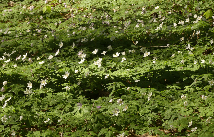 Von den Kalenderblättern, die ich noch zeigen will ... ... zeige ich heute ... Nummer 11 - ohne Schleife Das sind diesmal eigene Bilder ... an meinem Geburtstag fotografiert. Dieser Waldspaziergang war ein wundervolles Geschenk ... ohne Schleife. Dafür mit ganz viel Grün ... dieses wunderbare erste Grün des Waldes: ![]() Und auch schon gleich die ersten Blümchen ... ![]() ... und viele weitere mehr: ![]() Ein ganzer Wald voll blühender Waldanemonen (auch großes Windröschen genannt). Wo man hinschaut, blüht es weiß ... ![]() ![]() ... in diesem lichtvollen Wald: ![]() Es ist wunderbar, wenn das erste Grün schon da ist, aber noch nicht alle Bäume grün sind, denn dann ist der Wald besonders sonnig ... und doch schon grün. Wir werden beobachtet ... ![]() ... und wir beobachten das, was gerade um uns herumgeflogen ist: ![]() Das ist ein "großer Wollschweber" ... spitzer Stachel, aber ganz harmlos. Den brauchen sie, um Nektar im Flug zu saugen (wie Kolibris oder Taubenschwänzchen). Noch ein tiefer Blick zurück in diesen tollen Wald ... ![]() ... so viele Blümchen bekam ich noch nie zum Geburtstag geschenkt :)). ![]() Auf einmal staunen wir nicht schlecht ... der Wald wird nass ... ![]() ... und dort scheinen seltsame Wesen zu wohnen ... ![]() ... noch ist das ein Rätsel, warum da dieser See ist ... später kommt ne Infotafel und wir wissen mehr: ![]() Hach, so schöne Dinge gesehen und entdeckt ... da geht die Sonne auf: ![]() Beenden wir diesen tollen Spaziergang mit einem ganz langen Blick in die Sonne: ![]() |