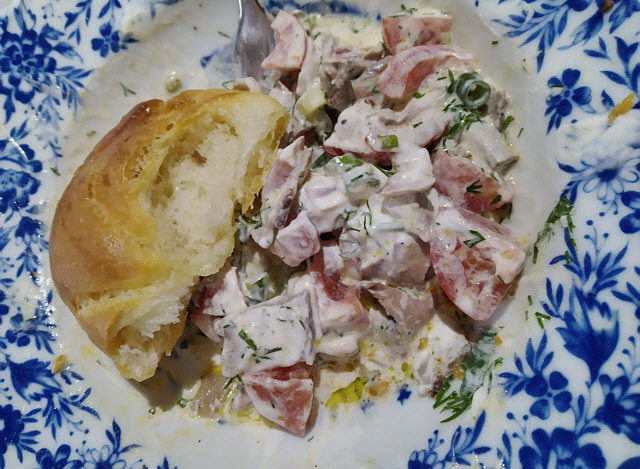 angemacht mit saurer Sahne, Essig, Leinöl, Salz, Pfeffer und heute früh