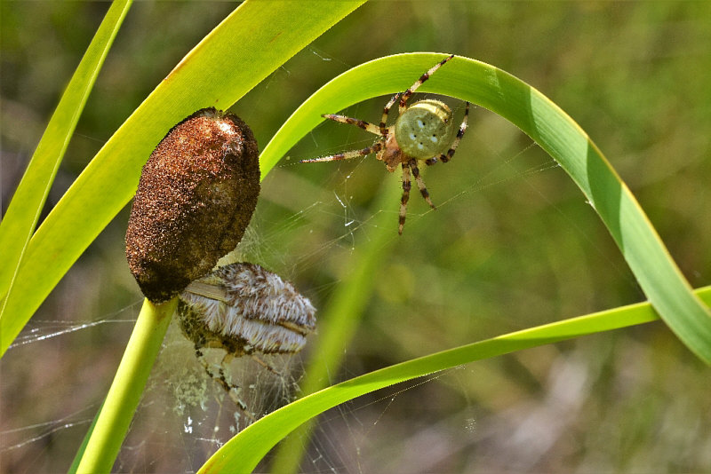Es war interessant, dieser Spinne zuzusehen, wie eifrig sie eine Artgenossin eingesponnen hat.