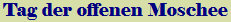 Vor 25 Jahren gab es diesen Tag zum ersten Mal. Seitdem heißt es jedes Jahr am 3. Oktober: klick --> Hier gibt es eine Liste <--klick aller Moscheen, die offen sind. Ich müsste eine gute halbe Stunde fahren bis zur nächsten, aber vielleicht ist das bei Euch ja näher. Vorausgesetzt, Ihr habt Interesse daran ... ach, ich frage einfach mal: Warst du schon mal in einer Moschee ? Wenn ja, wie war Dein Eindruck ? Wie weit ist die nächste Moschee von Dir entfernt ? Kennst du in deinem näheren Umfeld Menschen, die weder evangelisch noch katholisch sind, sondern einer anderen Religion angehören ? In einer Moschee gewesen ? Eindruck ? Wie weit entfernt ? Menschen anderen Glaubens ? |