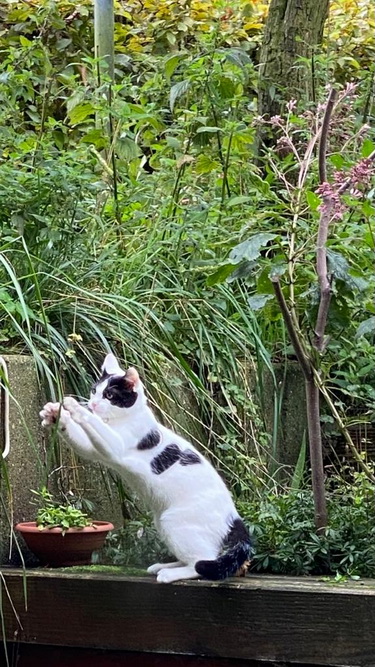 Meinen Garten findet er sehr spannend, da ist immer was los.
