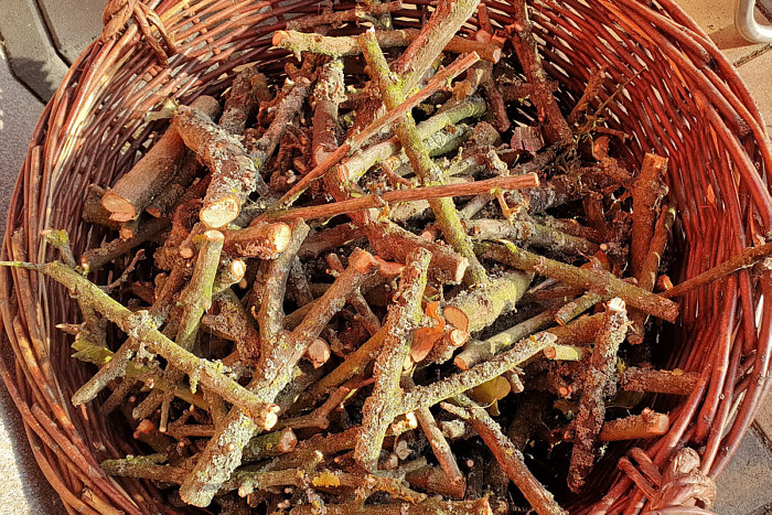 Sie band ca. 30 der kleinen Äste mit Draht aneinander,