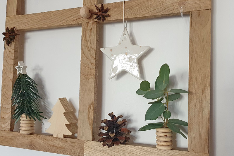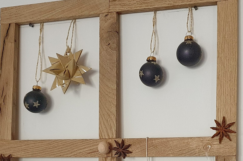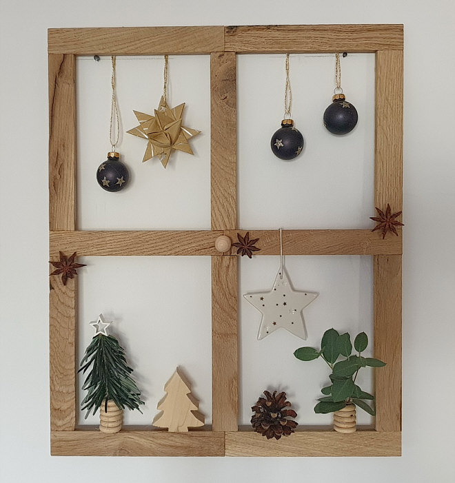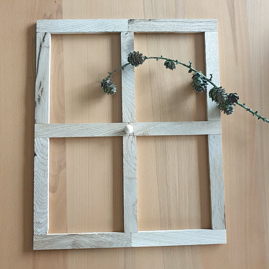 Elfi hat aus den Holzklötzchen einen Rahmen gebastelt ... ... und den mit diversen Dekoteilen geschmückt: Der Rahmen lässt sich auch für andere Anlässe schnell umgestalten. weiter