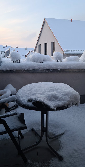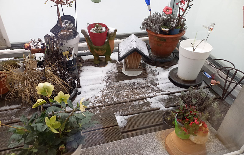 Der Schnee macht sogar vor Miras Balkon nicht halt: