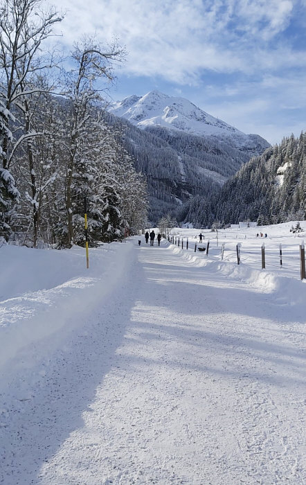 Ganz viel Schnee und sonnenbeschienene Winterwege gibts bei Christine:
